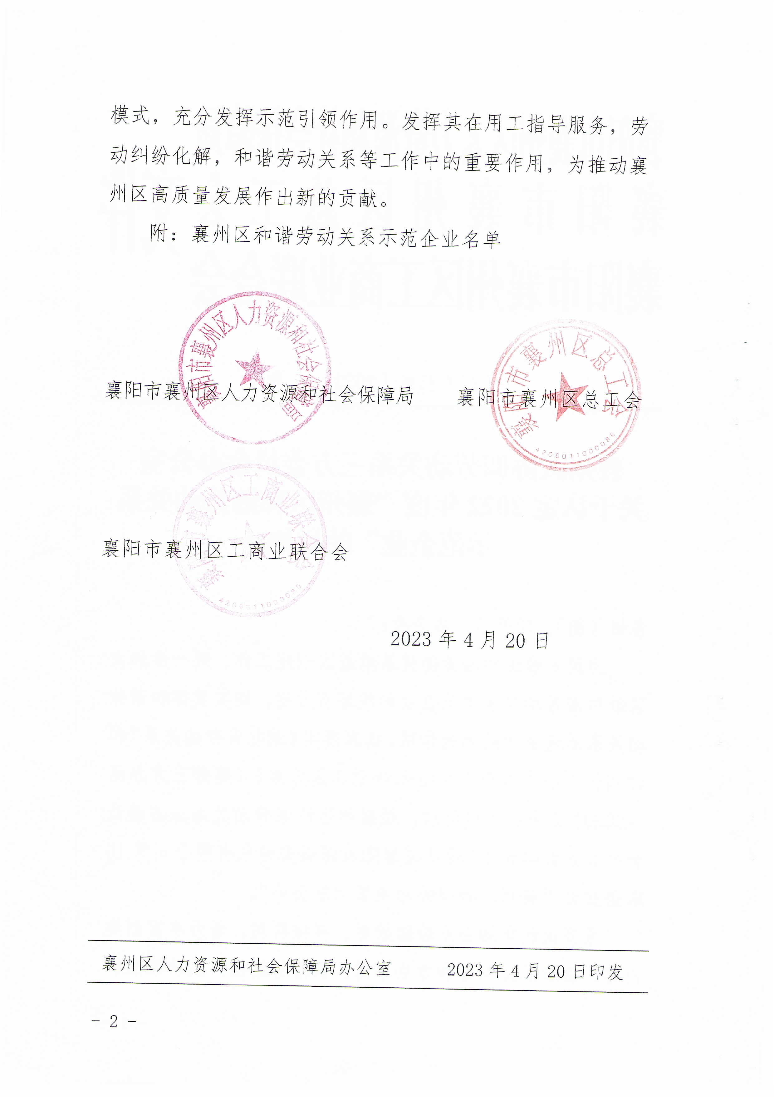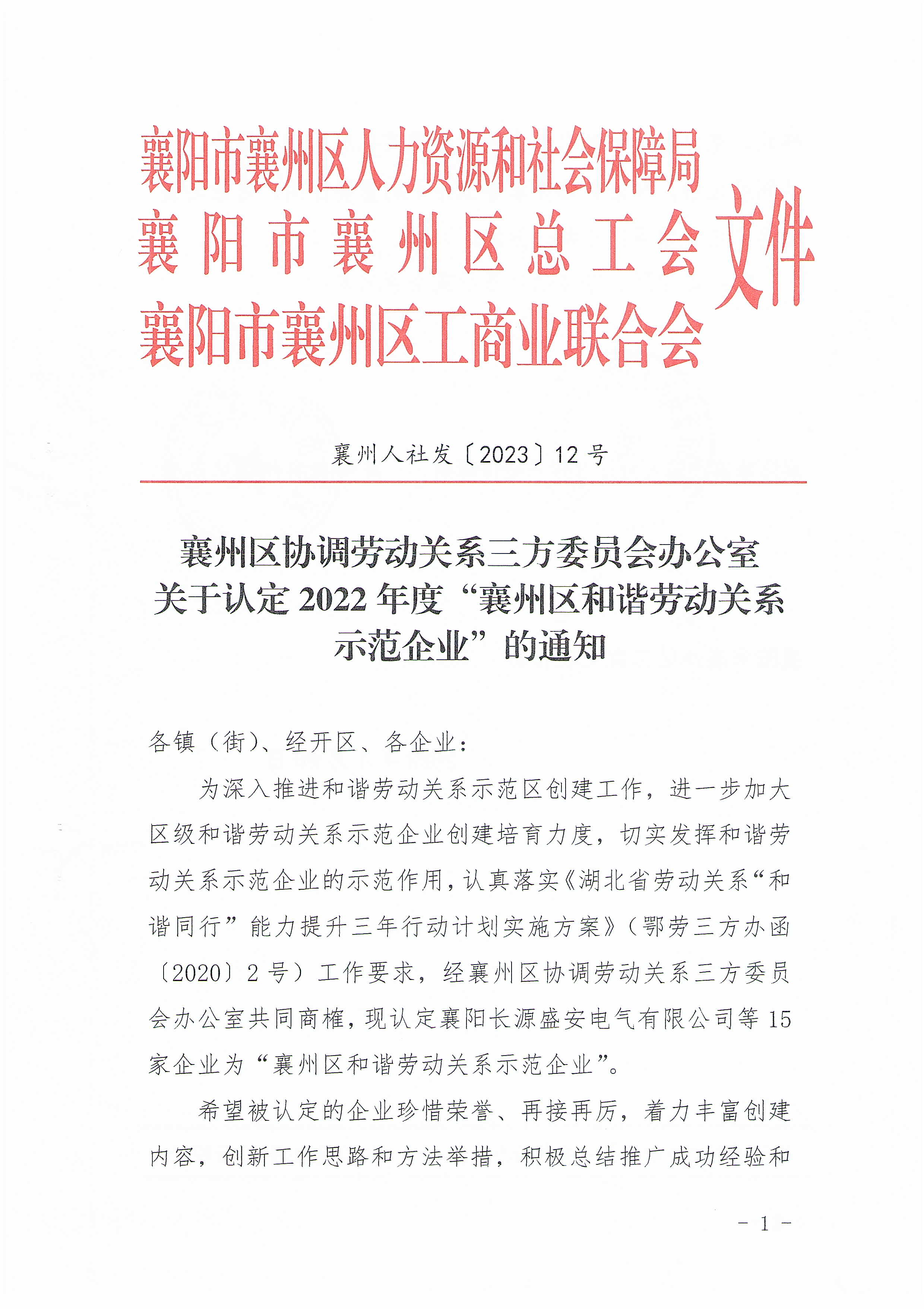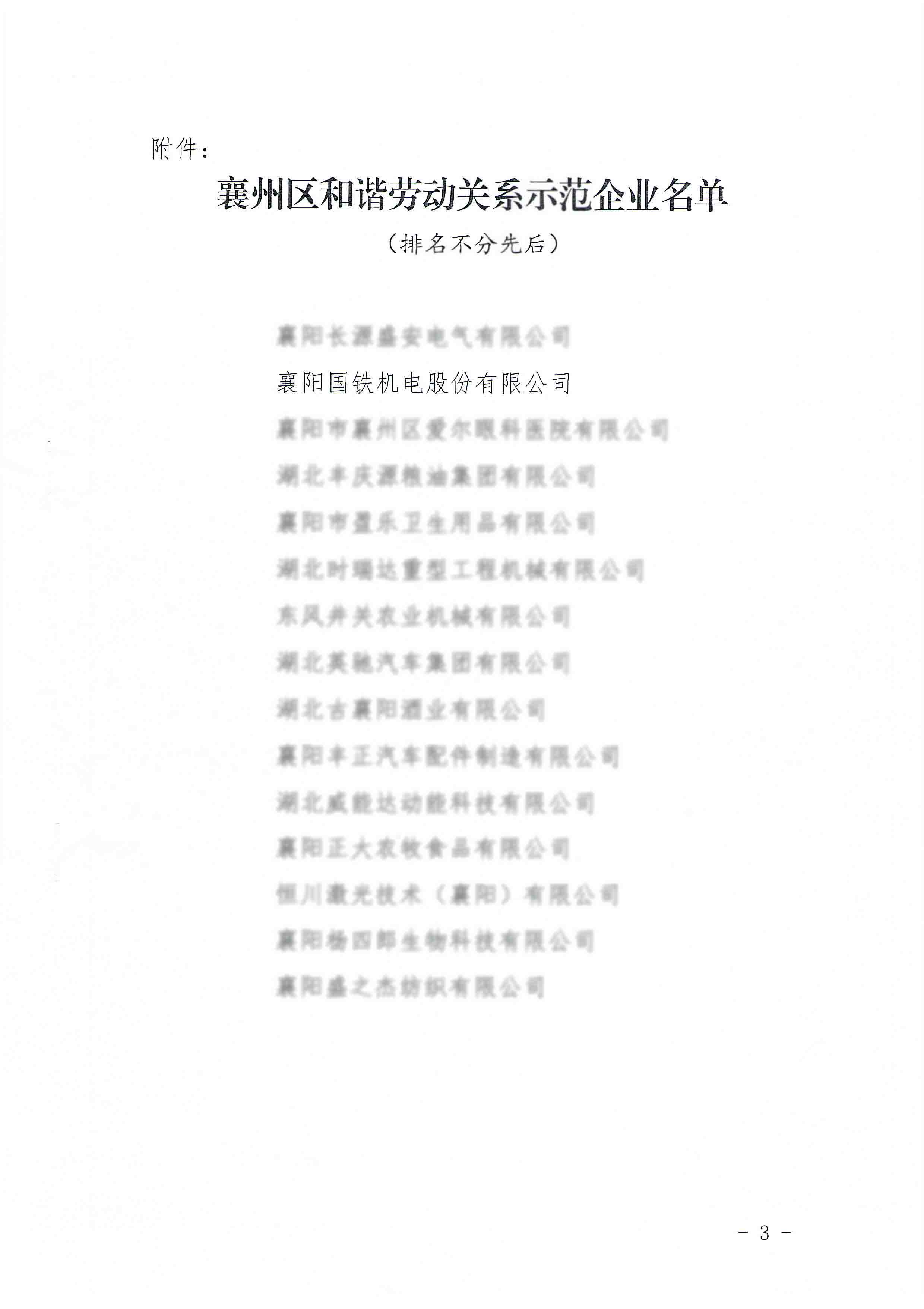 國鐵機電獲“襄州區(qū)和諧勞動關(guān)系示范企業(yè)”榮譽
